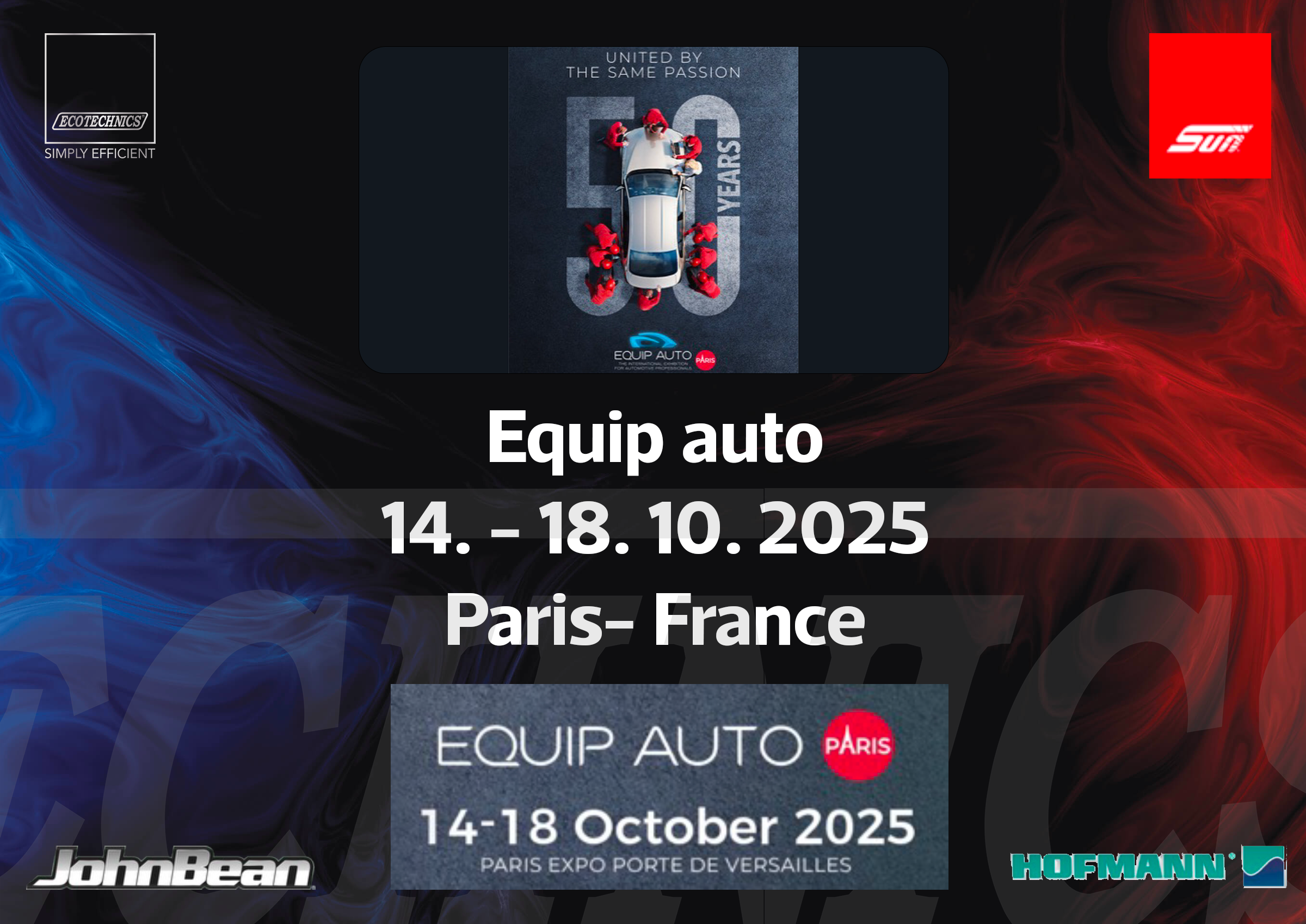 EQUIP AUTO Paris 2025 EQUIP AUTO Paris 2025 until October 18, celebrating 50 years united by the same passion. Main players on this Autumn event in Paris the Snap-on brands Hofmann, John Bean, Sun and Ecotechnics. Air conditioning focus is represented by the premium positioned ECK FLAG, ECK 4012 and QTECH IV [...]